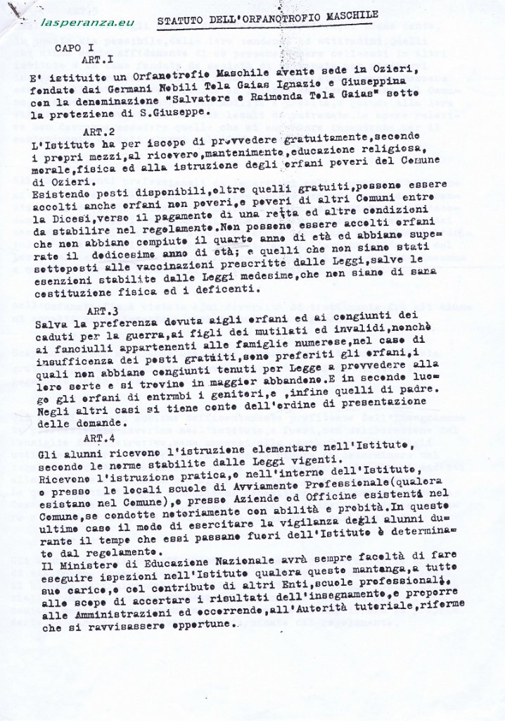 1948 STATUTO DELL'ORFANOTROFIO MASCHILE
